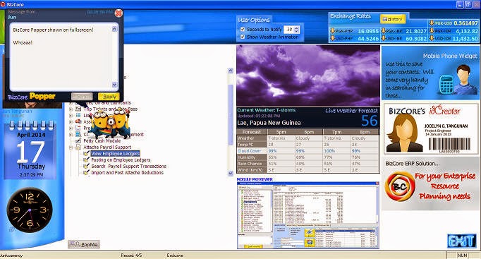 Well, originally I plan to call this BizCore Messenger but then there is no originality on that. And I wanted my apps to sort of look and feel unique. So I changed the name into Popper (it pops up a message, isn't it?). So there you go, BizCore Popper.